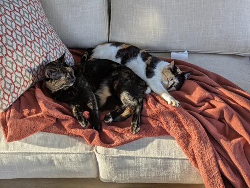 Aggie and Millie napping in the sun room. Going to go grocery shopping this morning. Hoping to to get to Costco early. We’ll see how that goes.
