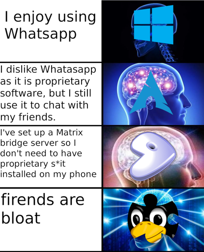 IMO the issue with WhatsApp isn’t that it’s proprietary. The issue is that it’s owned by Meta and it’s only free because they slurp down all your private data to target you for ads.