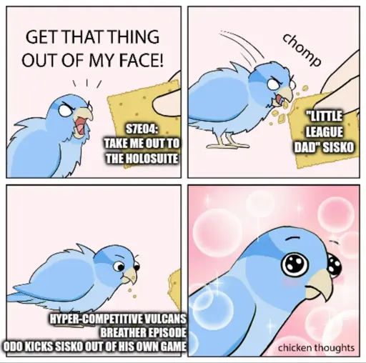 “Take Me Out to the Holosuite” didn’t become my new favorite episode or anything, but I did enjoy it after years of skipping it because I got bored with the baseball plot the first time I saw it.