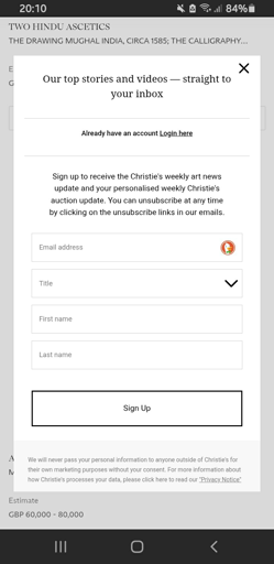 The Christies website. This popup goes away for no longer than 5 seconds if I click login. The website is impossible to use.