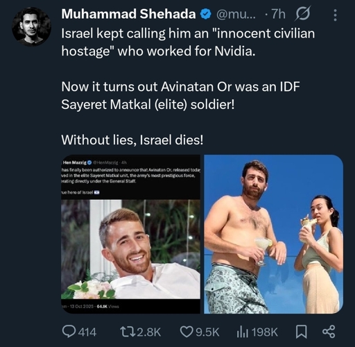 This guy was an elite IDF soldier all along, and Israel pretended he was a civilian. Western media spread the lie without checking, because fact-checking is only for Palestinian hospital directors…