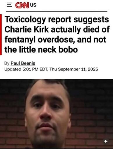 FistingEnthusiast@lemmynsfw.com to Charlie Kirk Memorial@lemmy.caEnglish · 22 days agoHe was nodding just when a random bullet flew bylemmynsfw.comimagemessage-square42linkfedilinkarrow-up1251arrow-down19file-text