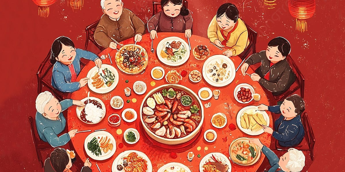 In Chinese restaurants you are expected to order a set of food for a number of people and the food is served in big plates in the center of the table as the illustration shows, so we have to order something everyone agrees on and later share it, only taking what we need to our plate