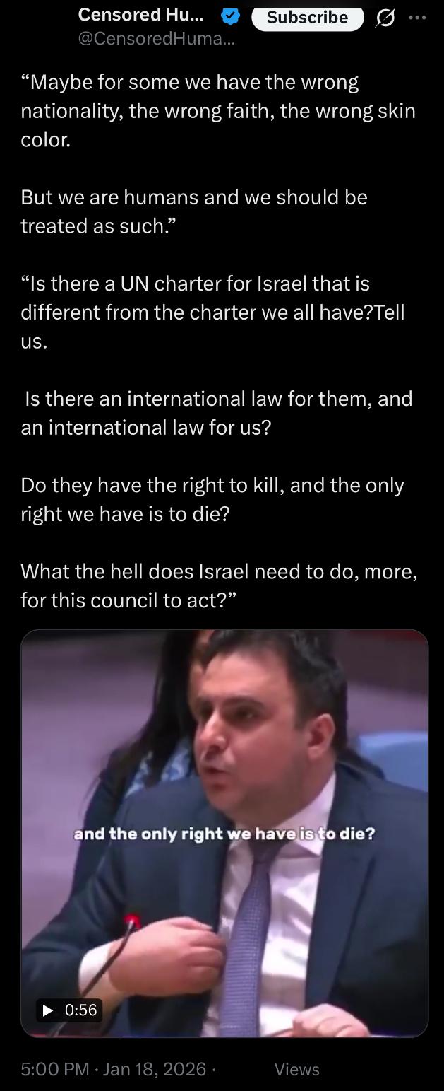 “Is there a UN charter for Israel that is different from the charter we all have?Tell us.
