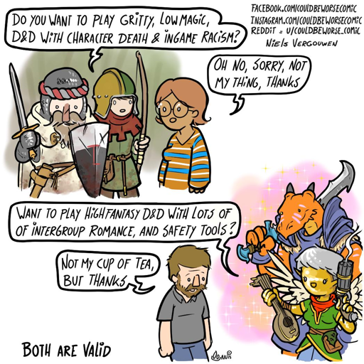I run gritty low magic games with death and safety tools. Which group do I join!?