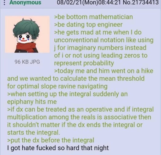 OPs boyfriend is obviously an i engineer and hates j engineers. No one can stay angry at mathematicians - engineers on the other hand…