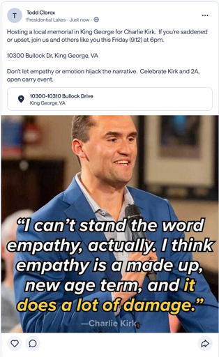 The divide is so deep here. If you feel some sort of hatred for charlie kirk, please, do let everyone know. We want to know if you support callus, weak, vile way that charlie kirk was murdered.
