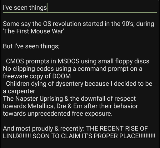 brem@sh.itjust.works to Linux@lemmy.mlEnglish · 3 months agoCongratulations to Linux on recent victories!lemmy.mlimagemessage-square25linkfedilinkarrow-up1118arrow-down114file-text
