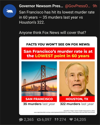Could really see Newsom becoming president of the future New California Republic. Not saying I like that future. But I am starting to see it how it could come to pass