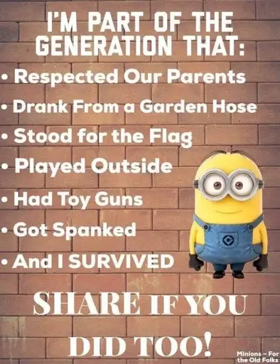 So is this boomer or gen x. Because neither of them respected their parents. Boomers were at least cool enough to burn their flags on their way to their free love compounds. Which is the shit millennials respect about our parents
