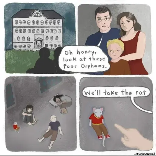 Well originally in the book, the mom just inexplicably gives birth to a mouse after a completely normal pregnancy. Everyone just kinds shrugs like “oh thats weird. Anyway its a boy.”