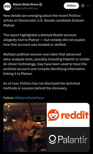 destructdisc@lemmy.world to A Boring Dystopia@lemmy.world · 13 days agoApparently Palantir can access the content of social media accounts that were deleted a decade ago.lemmy.worldimagemessage-square179linkfedilinkarrow-up1836arrow-down113file-text