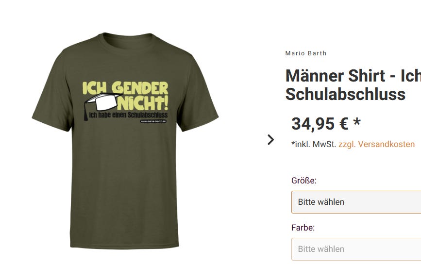 Was an dieser Stelle in schmunzelndem Einverständnis einfach ausgeplaudert wird, ist das extrem peinliche Geschäftsmodell des modernen Kolumnismus. Der Kolumnismus folgt einer Nachfrage, die sich gerne möglichst oft in süffigen Textchen ihre Ressentiments bestätigen lassen möchte. Martenstein, der sich in den letzten Jahren systematisch als Außenseiter des linksliberalen Mainstreams inszeniert hat, gibt hier ganz offen zu, dass er gerne über Themen schreibt, die beim Publikum ausgesprochen beliebt sind - vor allem offenbar bei Menschen, die in der Lage sind, mehrere tausend Euro für eine Schiffreise hinzublättern – you know, das einfache Volk, das sich vom Gendern der Elite abgestoßen fühlt… Die Tatsache, dass es unter „Zeit“-Leser:innen offenbar nichts Beliebteres gibt, als sich über das Gendern lustig zu machen, verweist auf den libidinösen Status dieses Ressentiments - die fast rauschhafte Freude an einer Verachtung, die sie sich mit den Fans von Mario Barth teilen. Diese Fans haben vielleicht nicht die 7000 Euro für eine Mekong-Flussreise parat, aber sicher die 35 Euro, die ein T-Shirt mit der Aufschrift „Ich gender nicht, ich habe einen Schulabschluss“ aus dem Barth-Fanshop kostet. Hier trifft Martensteins gediegener Anti-Intellektualismus (alle Menschen, die gendern, behauptet er im Interview, seien Journalisten, an der Uni oder in NGOs) auf die prollige Bildungsbeflissenheit eines Mario Barth („Ich habe einen Schulabschluss“). Es handelt sich um einen fast rührenden klassenübergreifenden Konsens, der sich im gemeinsamen befreiten Wiehern über die Absurdität der modernen Gesellschaft Bahn bricht.