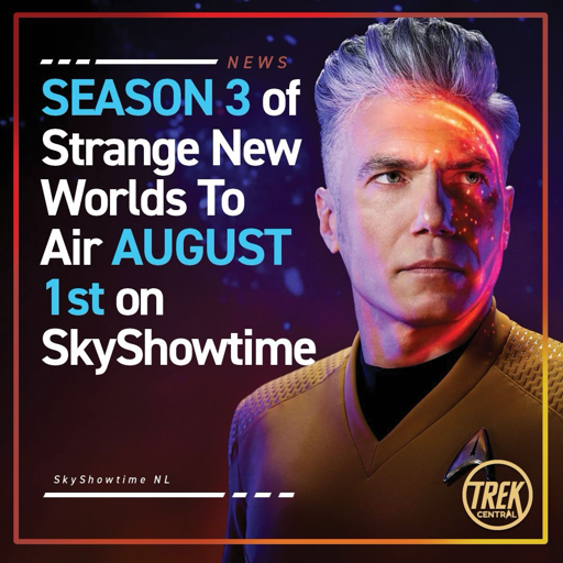 Attached: 1 image 🚨 BREAKING - Season 3 of #StarTrek: #StrangeNewWorlds To Arrive On SkyShowtime In August! SkyShowtime NL has confirmed, via a comment on their Official Facebook page, that Season 3 will arrive on August 1st. 🔷 No Date for Paramount+ has been shared yet.