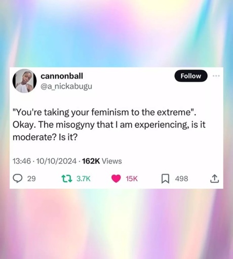 It’s something I’ve seen thrown at women a fair bit. Feminazi, stripping men’s rights, feminism has gone too far blah blah. Has anyone ever accused you of it? And any women said this to you?
