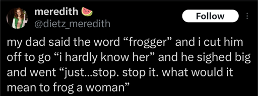 Stamets@lemmy.world to 196@lemmy.blahaj.zoneEnglish · 5 months agoHardly know her rulelemmy.worldimagemessage-square28linkfedilinkarrow-up1387arrow-down15