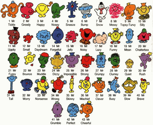 Yeah, when I was little me and my sister both found the Little Miss lineup offputting, she had a Mr. Bump sticker on her bedroom door and I got Mr. Tickle … Little Miss Daredevil kicks ass though :-)